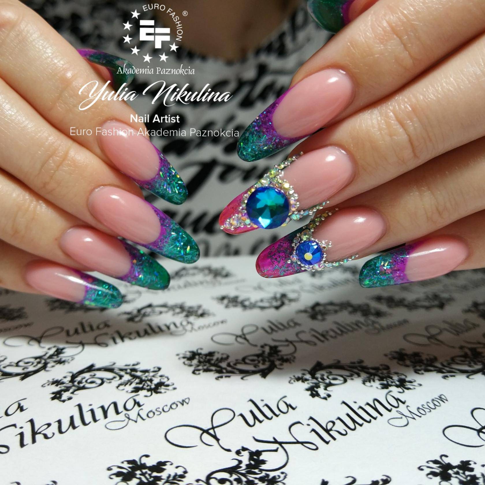 Сложные идеи маникюра со стразами