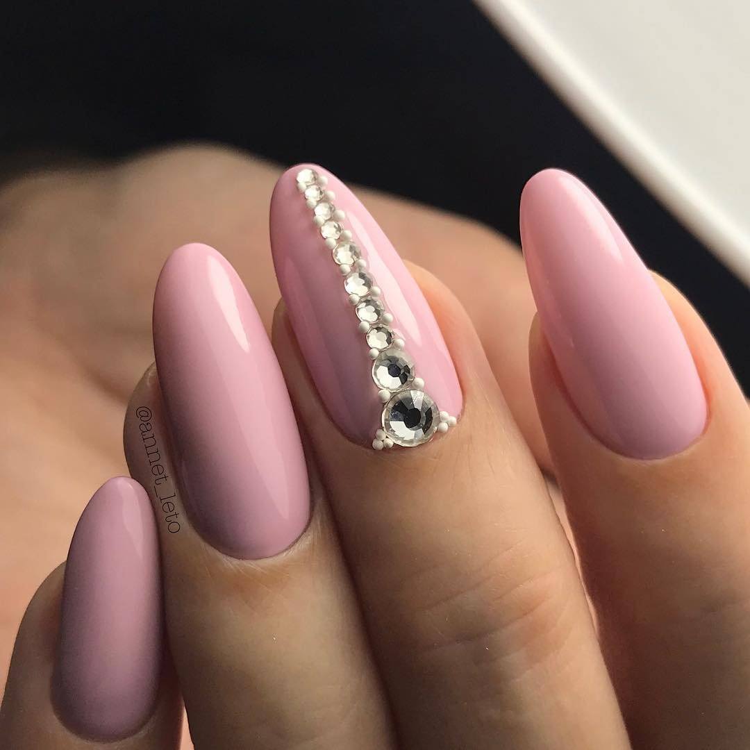 Уже давно стразы перекочевали с элементов одежды к нам на ногти. Красивый маникюр со стразами хорошо смотрится на ногтях разной формы и подходит для всех случаев жизни.