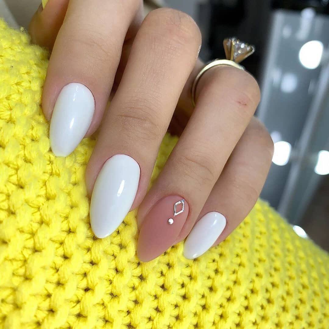 Техники маникюра в белых тонах на острые, закругленный, квадратные ногти.