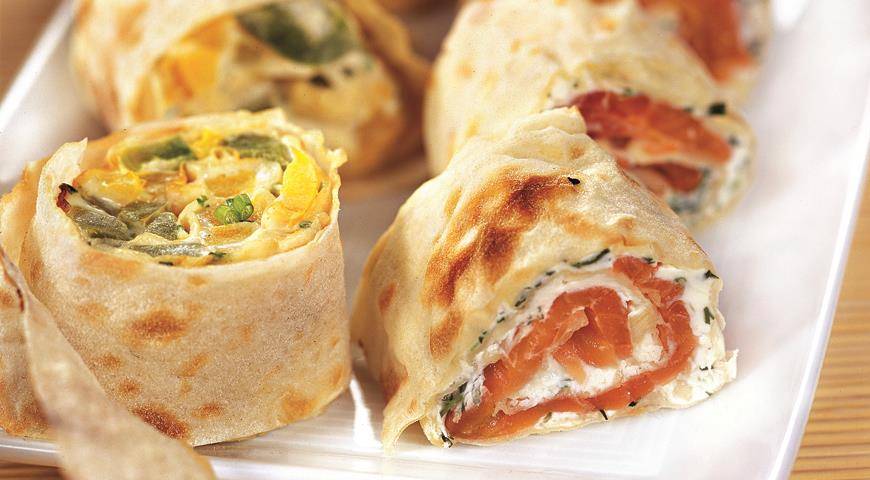 Лаваш, сливочный сыр, лосось и сладкий перец