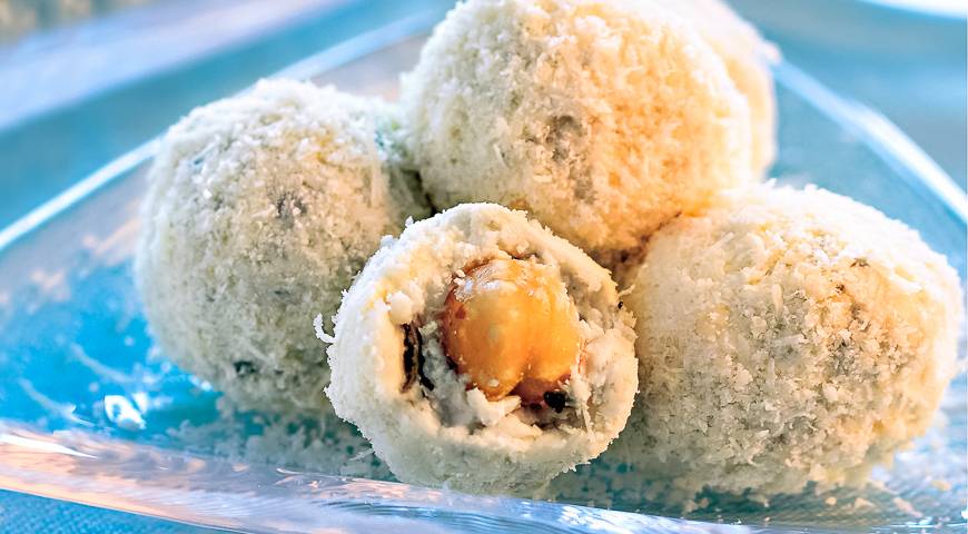 Сколько раз мы проходили это в новых компаниях! На красивом подносе подаём вот такие маленькие белые шарики – «конфеты» из сыра. Гости отказываются – говорят, сладкое еще рано. А мы настаиваем и после с улыбкой наблюдаем за их выражением лиц, когда они всё-таки кладут «конфету» в рот и чувствуют вкус четырёх сыров одновременно…