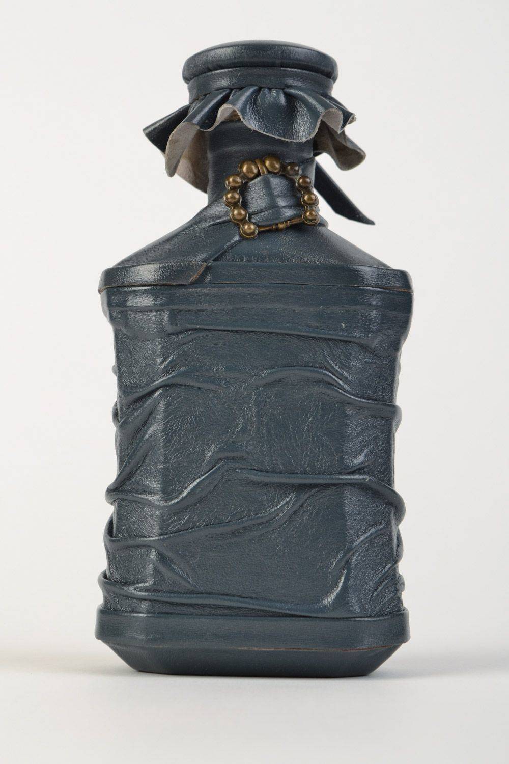 Можно взять более широкую ленту, тогда бутылку будет проще и быстрее задекорировать. На саму ленту также можно наклеить разные бусины и любой другой декор, чтобы изделие смотрелось наряднее. Можно использовать несколько лент разных цветов, чтобы создать что-то вроде нарядного костюма для бутылки, смотрите на фото: