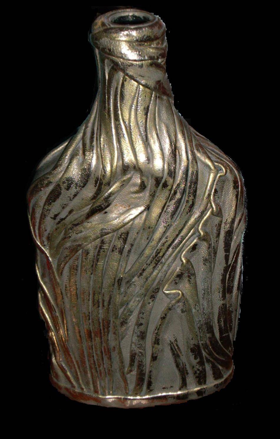 - для окраски основ с сохранением их текстуры – на бутылку навита бечевка, нити, ленты, сделана аппликация из бумаги или ткани;