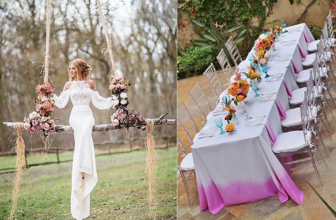 Не менее важно, чтобы ткани и цвета, используемы для фотосессии и оформления банкетного зала сочетались с винтажным платьем невесты и общей концепцией свадьбы. В данном случае это могут быть натуральная кожа, изделия из состаренной древесины, предметы из керамики
