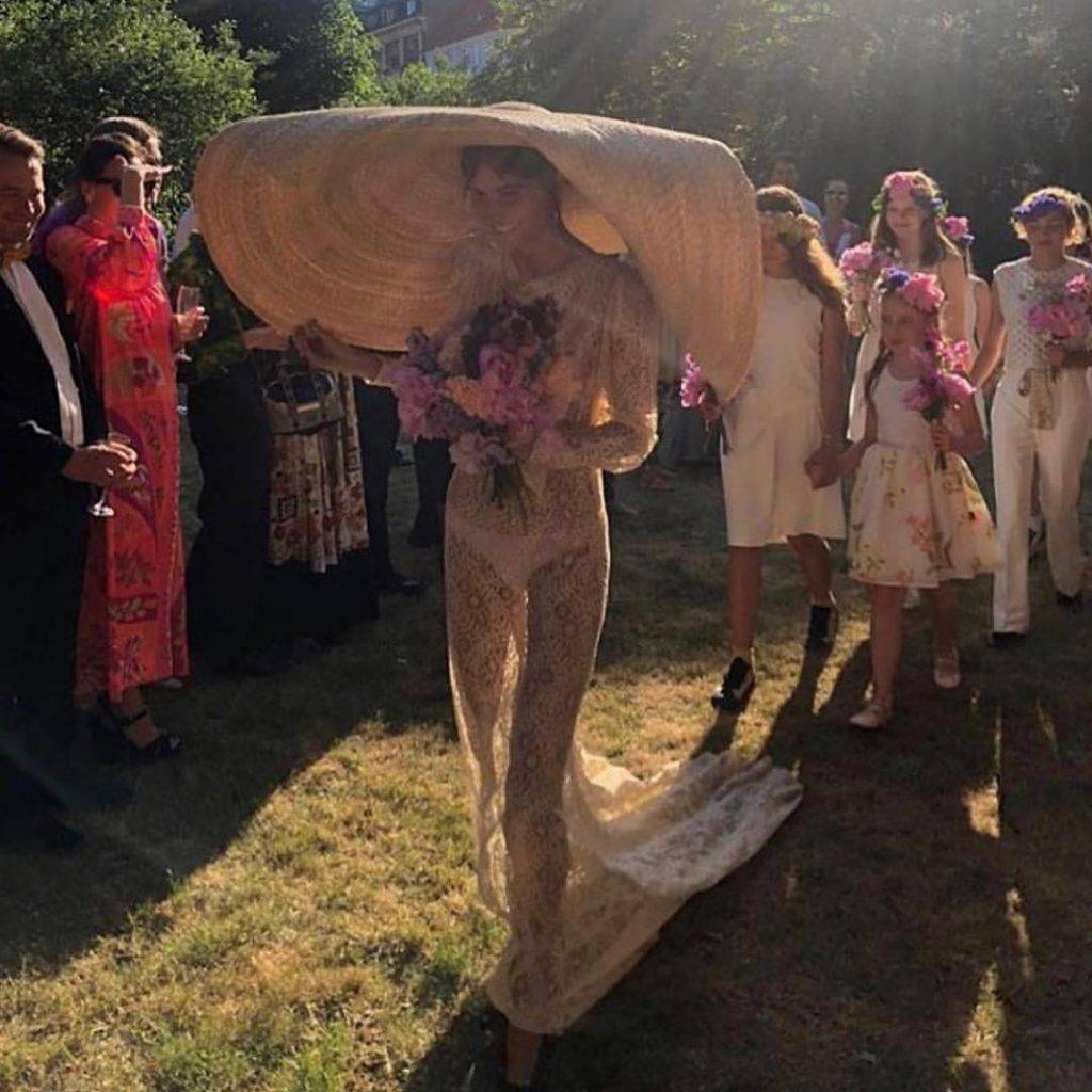 А вспомните Эмму Лет, которая вышла замуж в полупрозрачном платье и огромной шляпе Jacquemus. Эмили Ратаковски выбрала для самого главного дня в жизни оранжевый брючный костюм Zara, а Оливия Палермо произнесла клятву верности в шортах.