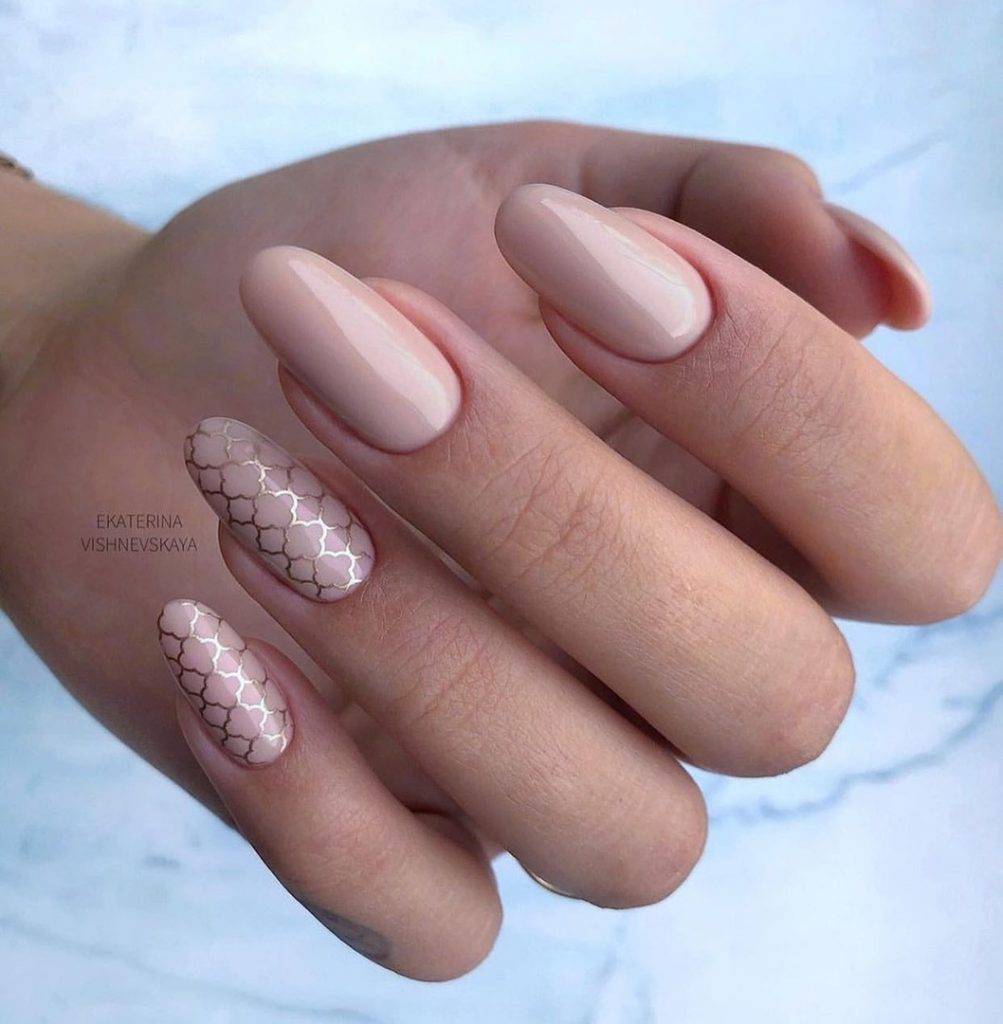 Нюд и розовый маникюр для свадьбы