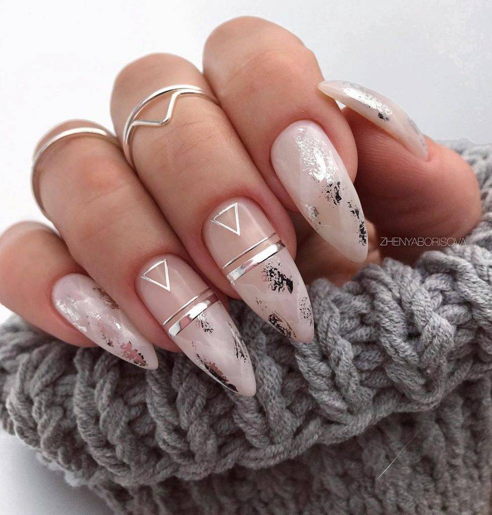 Модный осенний маникюр с фольгой 2020