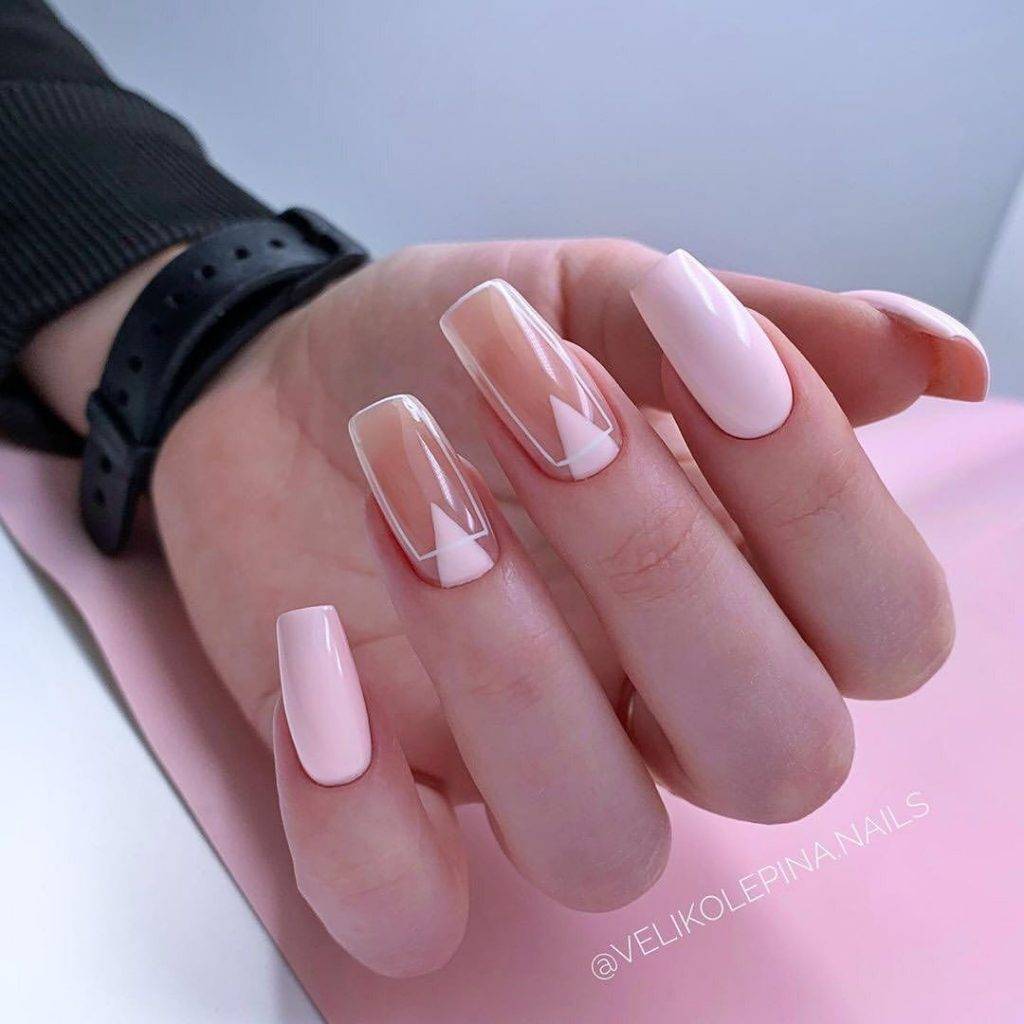 Нежный розовый и белый маникюр для невесты в нюдовом дизайне