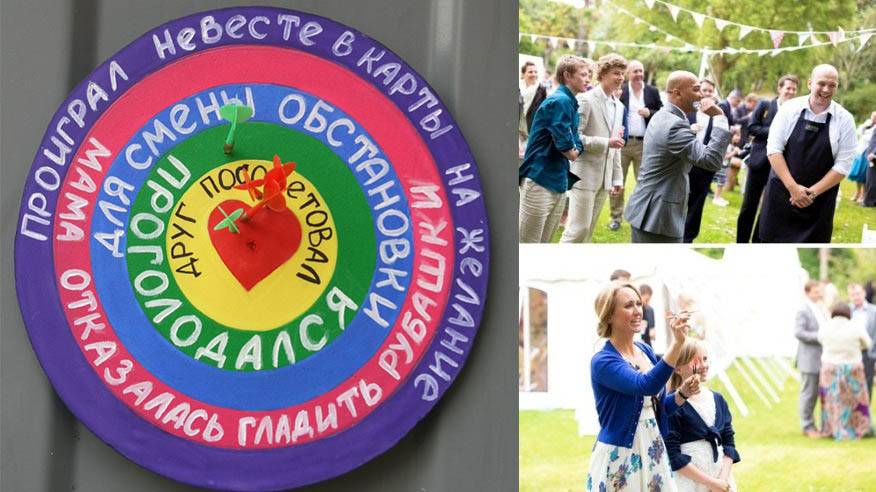 Иногда задают и главный вопрос: а почему, собственно, молодой решился на свадьбу? Ответ на него дается с помощью импровизированного «Дартс» и дротиков.