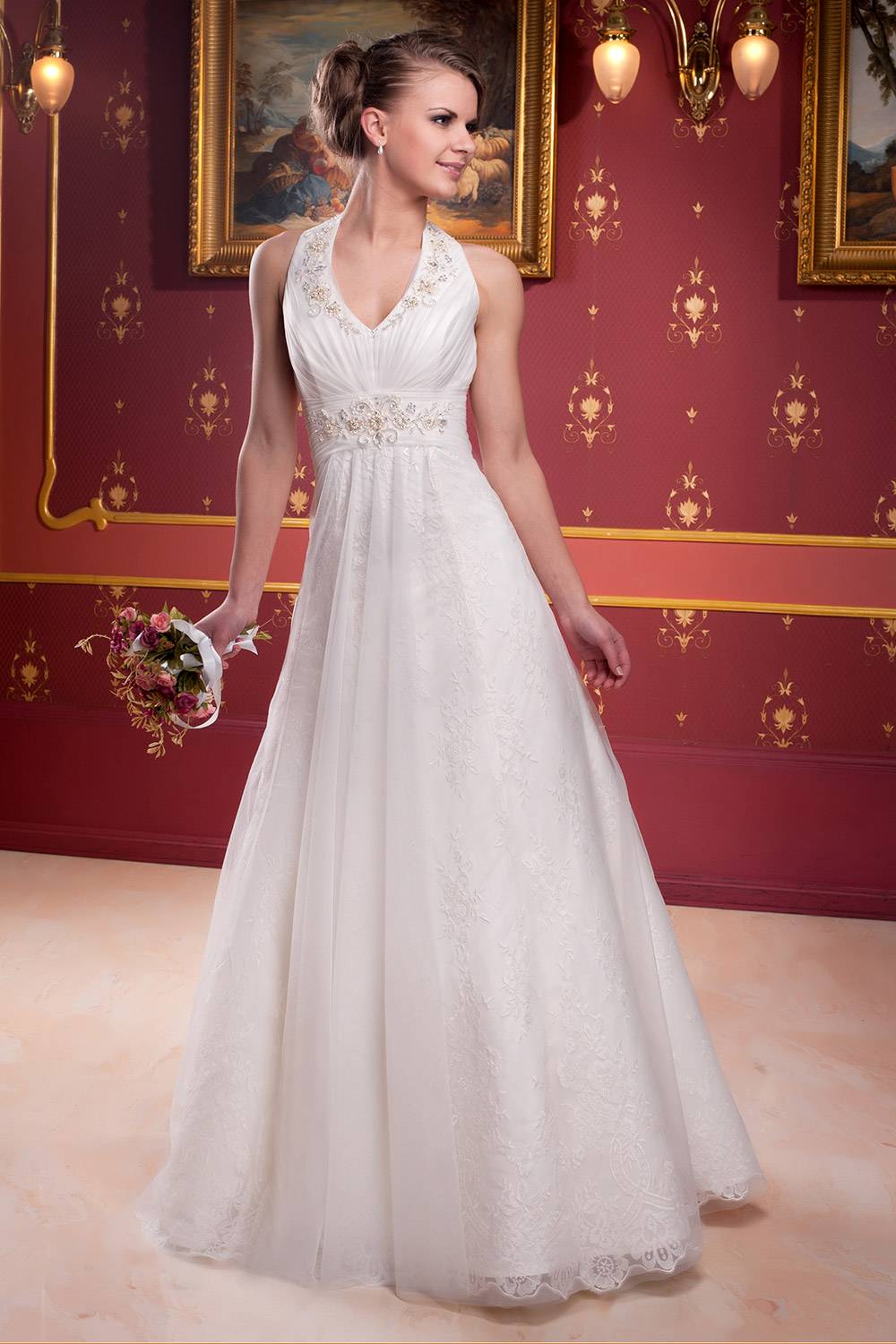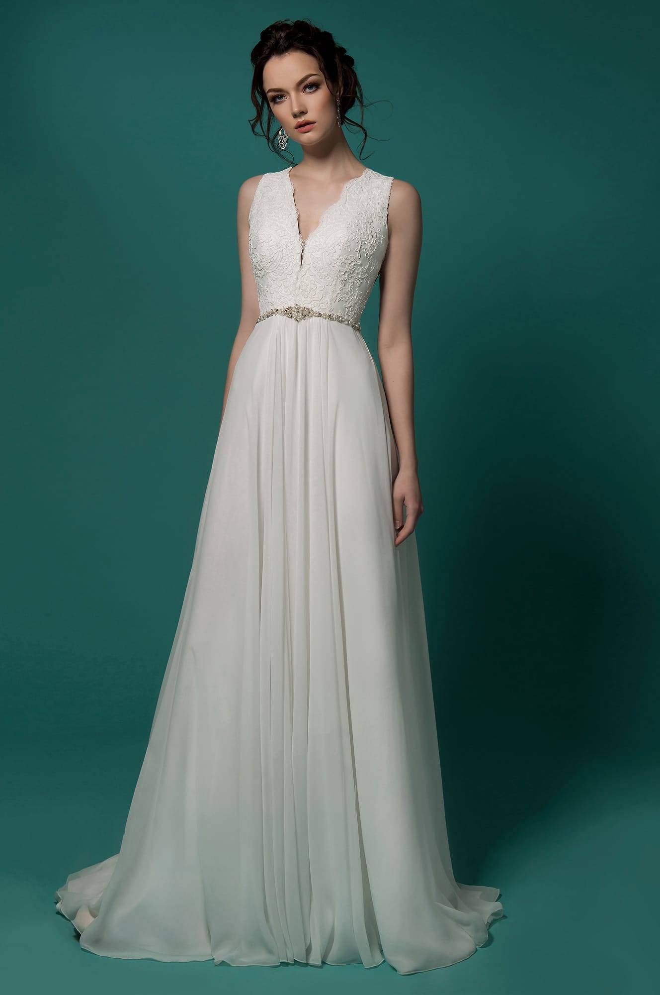 Свое название эти свадебные платья получили из-за схожести с буквой «А». Они грациозно подчеркивают грудь и скрывают излишне объемные бедра. Широкая юбка стильно дополняется топом и декорируется кружевным подолом. Материал для низа может быть любым: от нежнейшего шелка до плотных, тяжелых тканей.
