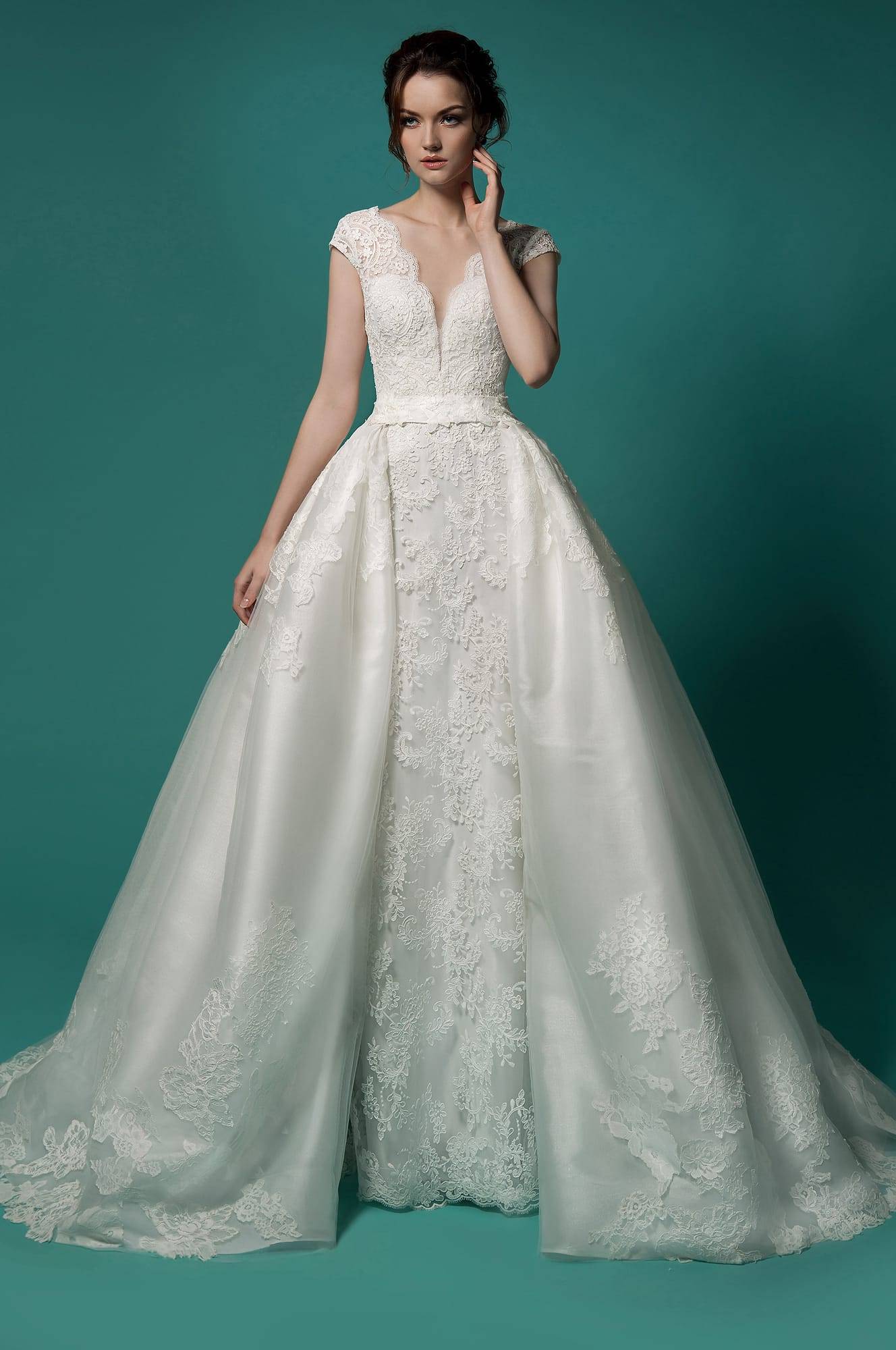 Модные и пышные свадебные платья 2020 – 2021 хорошо сочетаются как с открытыми, так и закрытыми частями тела: плечиками, руками, спиной или бюстом.